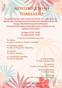 Τ.Κ. 57013 Θεσσαλονίκη - musicschooltompazi@gmail.com